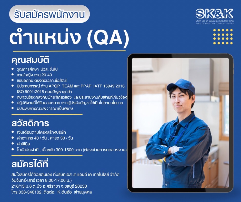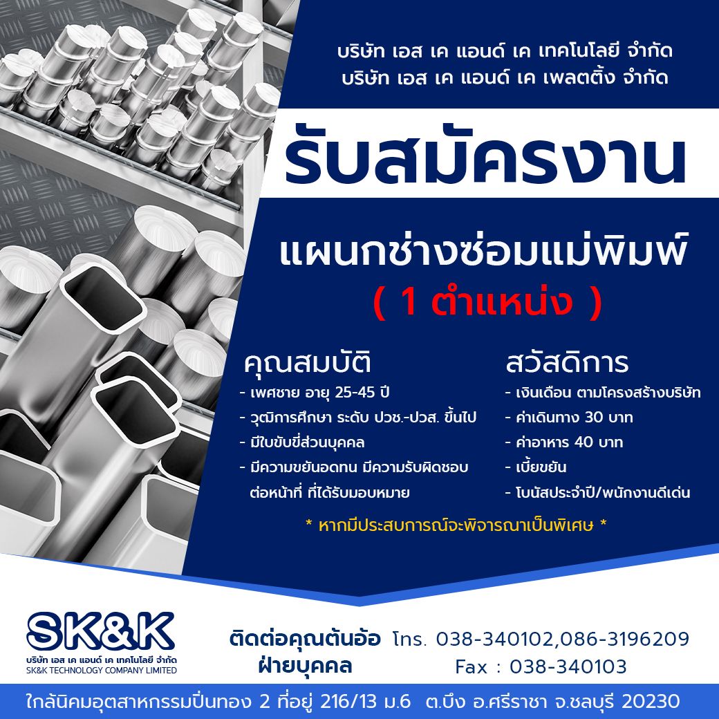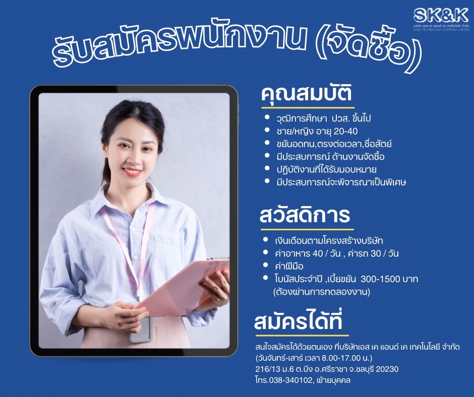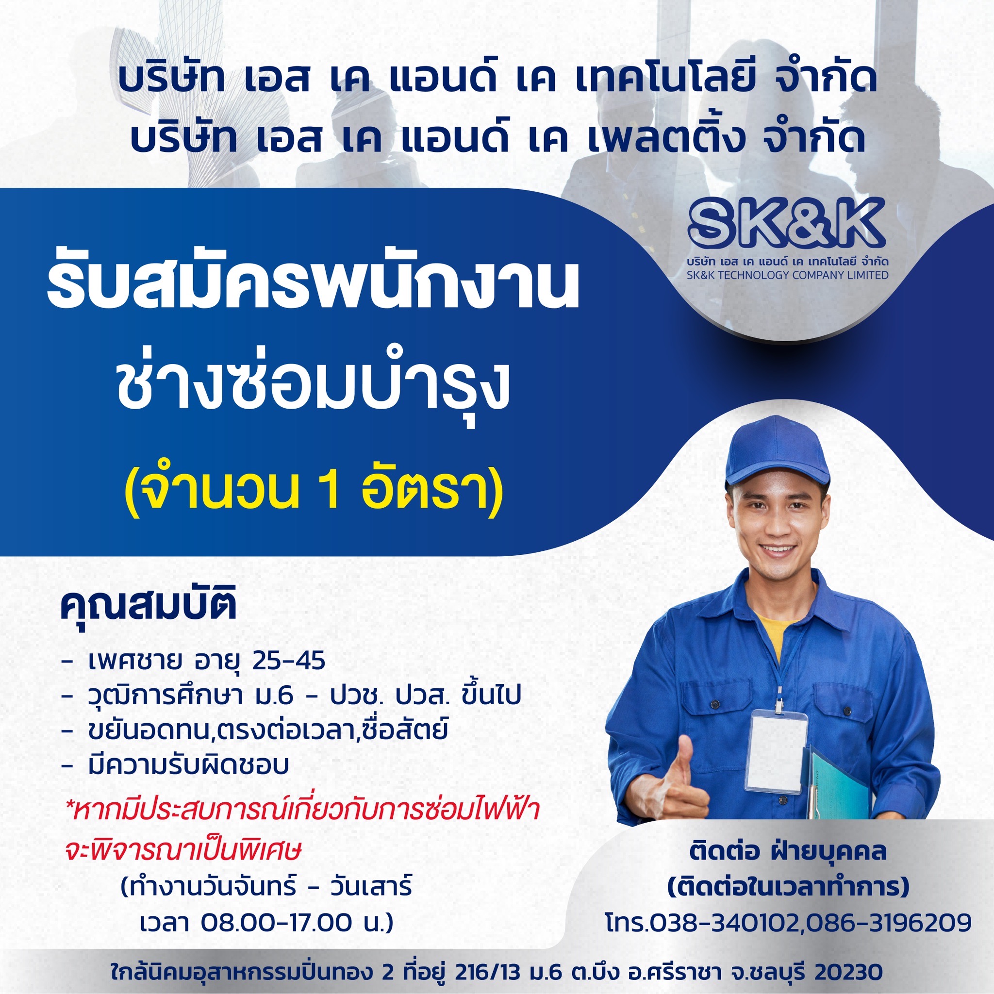 สนใจสมัครได้ด้วยตนเอง ที่บริษัทเอส เค แอนด์ เค เทคโนโลยี จำกัด